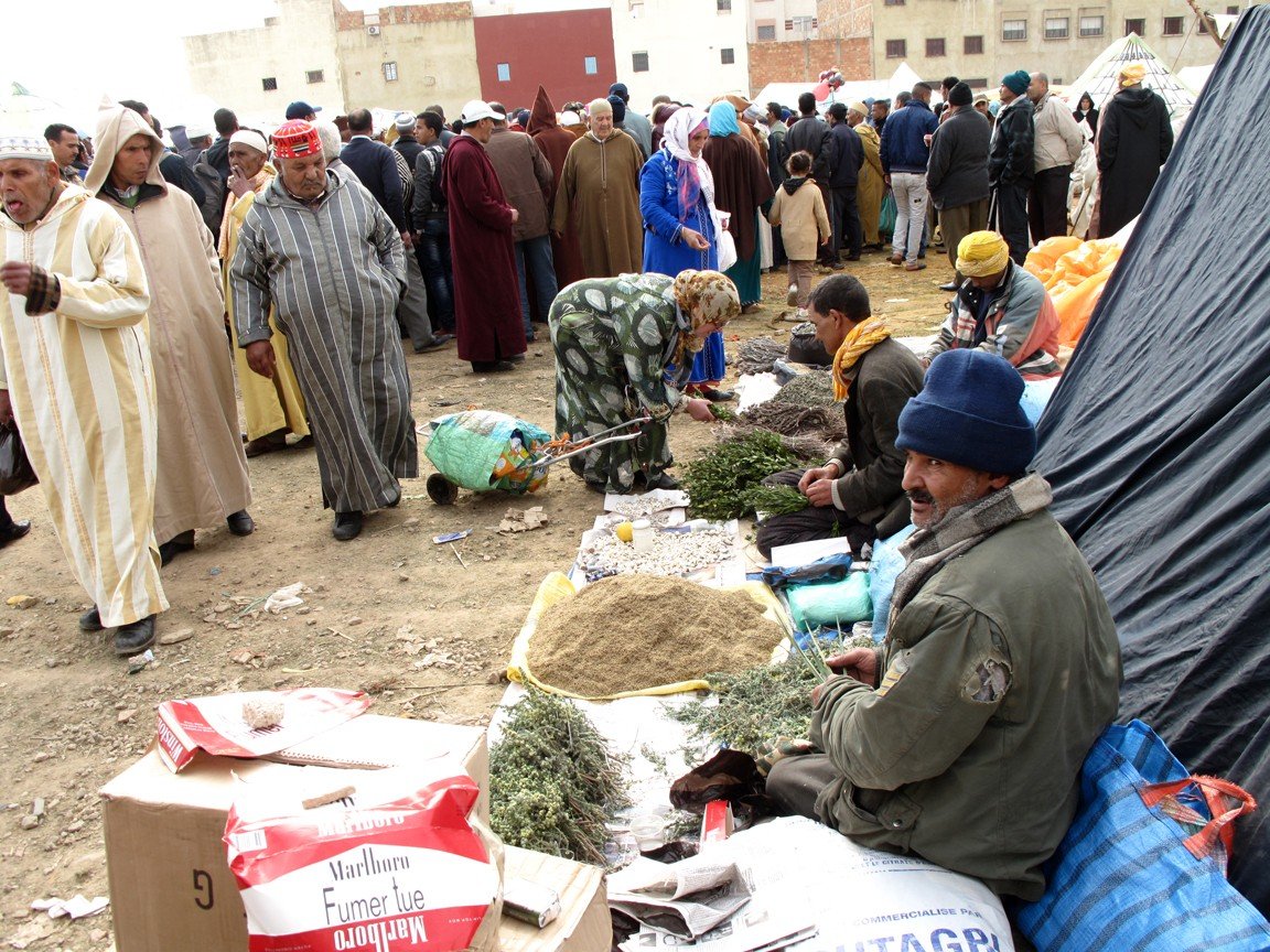 Los zocos de Marruecos han sido objeto de numerosos estudios antropológicos durante todo el siglo XX, muchos de estos trabajos han puesto el foco, a veces de forma poco acertada, en distintos aspectos como la religiosidad, la división del espacio o la cuestión de género para explicar su dinámica y funcionalidad. Por su parte, la visión orientalista también se esforzó en hacer una descripción del zoco, una búsqueda de lo exótico que intentó atribuir cierto aire de misterio a lo acontecido en los mercados mezclando la hechicería con lo espiritual y el misticismo. Sin embargo, el zoco es mucho más que todo eso. Para la población marroquí es el espacio comercial por excelencia, pero también el del entretenimiento, el de la sociabilidad y el de la diversidad. En la actualidad, existen estudios mejor enfocados y fundamentados que determinan tres estructuras o tipologías para el zoco: los mercados rurales semanales; los mussem (de los que ya hemos hablado en el post anterior) y los mercados urbanos (que en muchas ocasiones son mega zocos). Los antiguos criterios de clasificación del zoco se basaron en la temporalidad: si el zoco era diario, semanal o semi-semanal, o en el espacio geográfico donde se celebraban: zocos rurales y zocos urbanos. Esta distribución geográfica, que en ningún caso es aleatoria, dependerá de un factor económico, que se basa en el valor comercial de los productos que son vendidos en el mercado; y de un factor de conveniencia, en relación a las posibles molestias que puedan causarse a la población con su instalación en un determinado lugar. Dejando de lado todas estas clasificaciones, la importancia del zoco radica en sus tres funciones principales que son la redistribución de productos rurales, la comercialización de diversos productos de origen, a menudo, externo y la prestación de servicios.