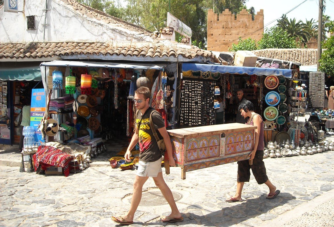 Una experiencia muy marroquí. Uno de los atractivos de viajar a las ciudades marroquíes es perderse en las medinas, callejear y rebuscar en sus tiendas y puestos donde encontrarás una gran diversidad de artículos. Si vas a comprar tendrás que aprender a regatear, porque el regateo forma parte integral de la cultura marroquí. Si estás dispuesto a pasar el tiempo puedes obtener artículos muy rebajados, incluso a la mitad del precio inicial, lo más importante es fijar tu límite antes de empezar a negociar y, si no lo consigues, abandonar. Cuando uno desiste en el empeño puede resultar eficaz para lograr lo que se pretende porque será llamado una y otra vez por el vendedor con la intención de que acabe la negociación que ha iniciado. Es importante ser precavido en las medinas, muchos comerciantes se han convertido en expertos aprovechadores del turista más ingenuo, es la forma de hacer negocio de algunos marroquíes urbanos, por lo que hay que estar muy atentos durante las compras. A veces, el guía que has elegido está compinchado con el vendedor y hace como el que ayuda pero en realidad intenta provocar la compra. Aunque lo recomendable es relajarse y dejarse llevar, hay que evitar ser ingenuos y caer en el engaño, algunas mujeres en las grandes plazas suelen cogerte de la mano para realizarte un tatuaje de henna, según ellas gratis, pero no es así, antes de que te des cuenta te lo estarán haciendo y después tendrás que pagar. Si realmente quieres el tatuaje negocia el precio con antelación, recuerda que hay que regatearlo.