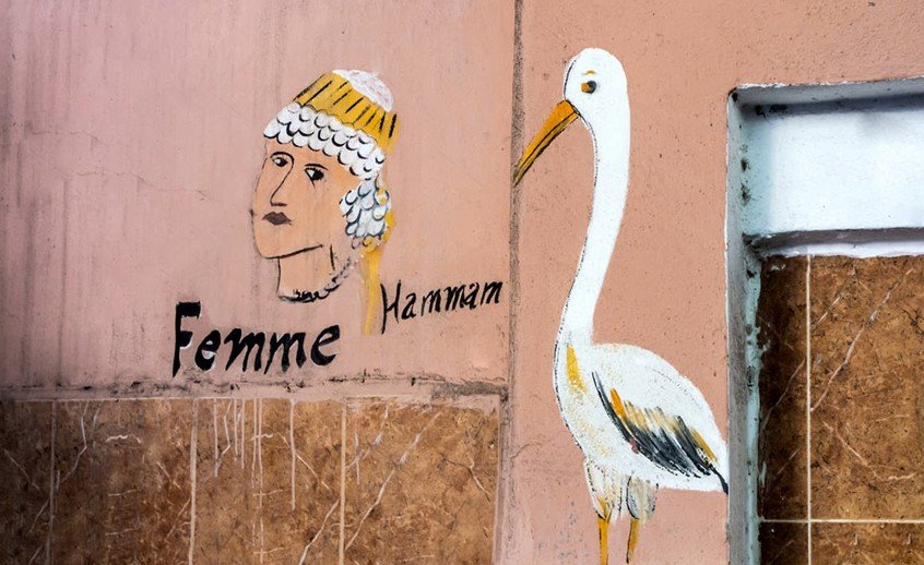 Si has viajado alguna vez a Marruecos seguro que has sentido la curiosidad o el deseo de entrar a un baño público. También es seguro, que la visión occidental que subyace en la imaginación de muchos turistas nada tiene que ver con la realidad de estos espacios. Algunos de los elementos imaginados como parte del hammam (masajes sensuales, piscinas de agua, aceites, etc.), no existen en el austero hammam tradicional de barrio. Un masaje tipo relajación nunca ha formado parte de la tradición de este baño público, pero sí lo ha hecho la exfoliación de la piel y el lavado profundo de cabeza y cuerpo. Los hombres que acuden al baño pueden hacer uso de un asistente que le estira y manipula el cuerpo, a modo similar de un tratamiento quiropráctico, una realidad muy distinta a la imaginada. Por su parte, algunas mujeres después del parto, dejan que las empleadas del baño manipulen su útero para recolocarlo de nuevo y volver a su vida normal, pero nada parecido a un masaje sensual con aceites esenciales.