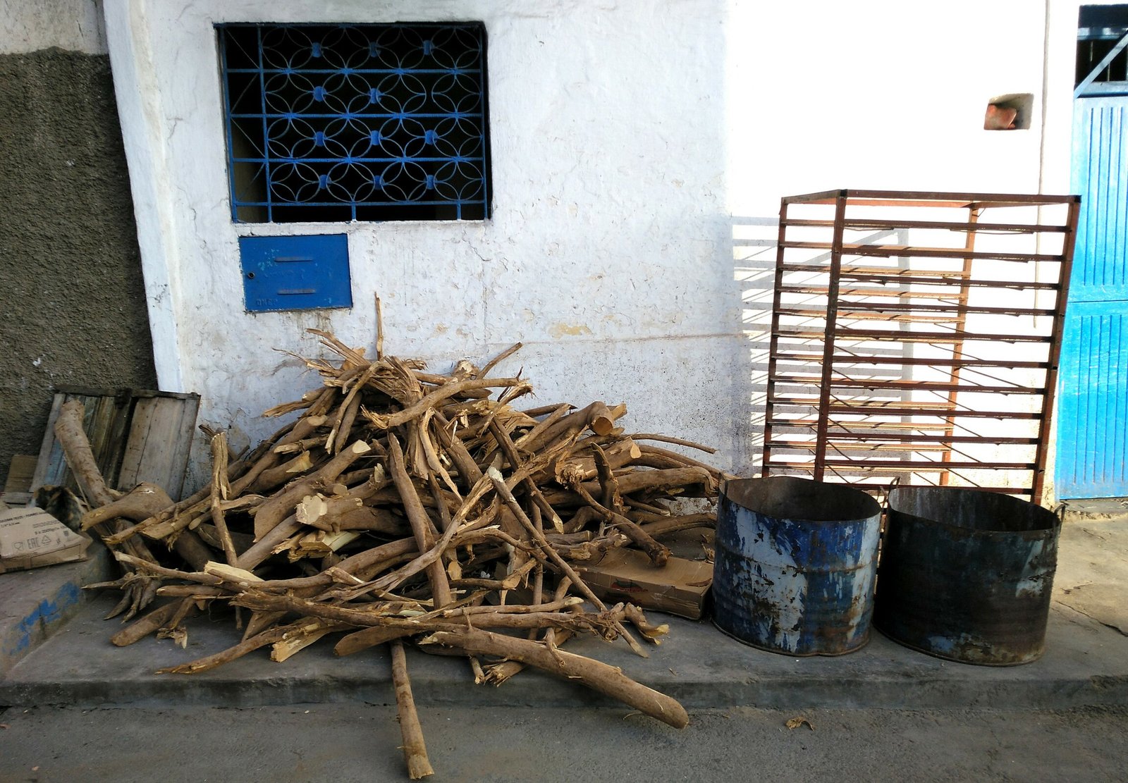 La madera apilada en la puerta a veces nos permite identificar el discreto hammam.