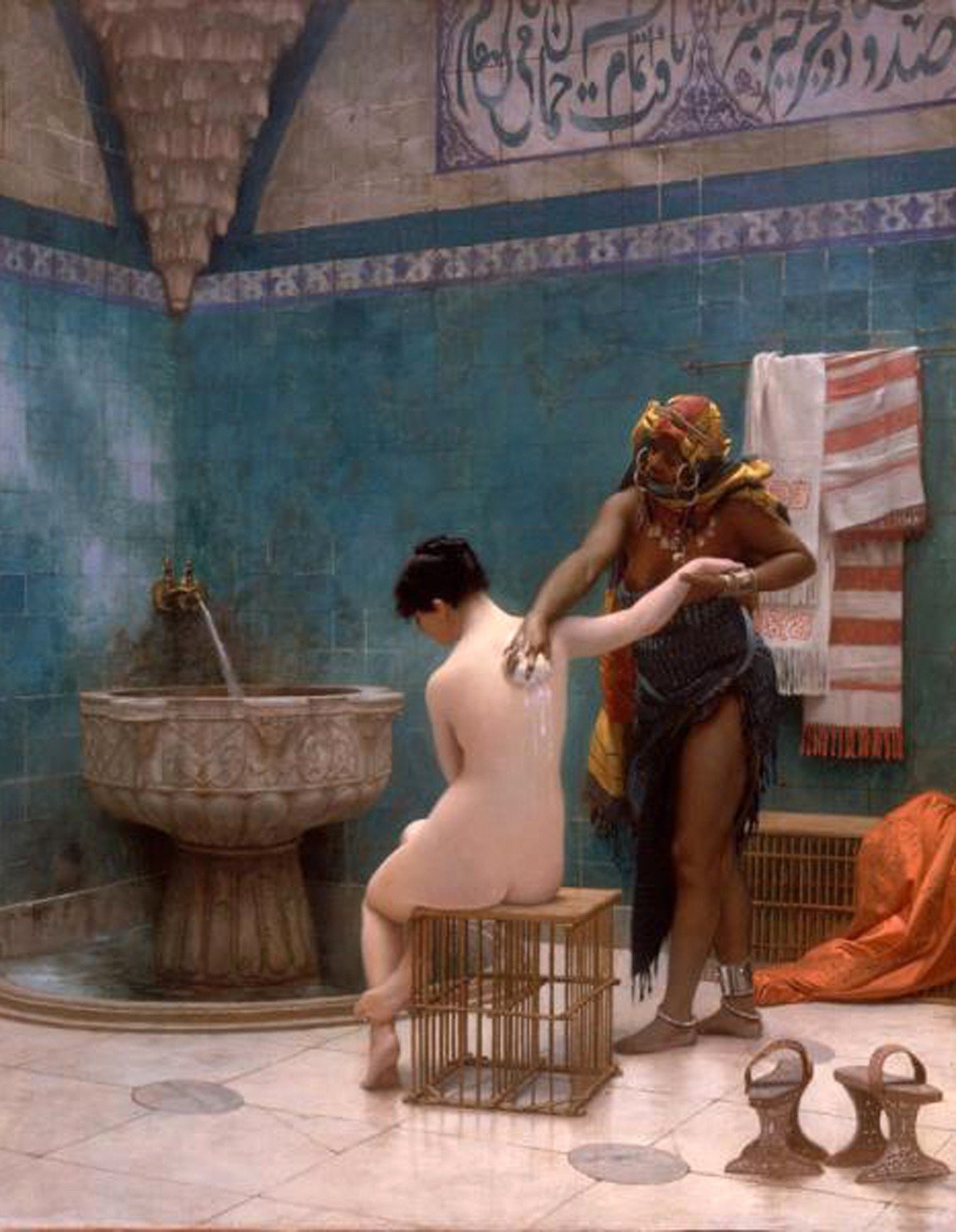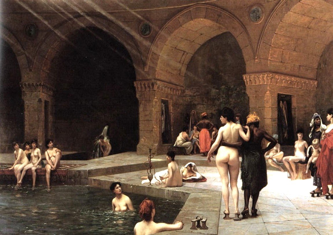 Es comprensible la visión fascinante occidental de las mujeres islámicas en los baños públicos de Marruecos. El espacio ha sido altamente erotizado y sobrevalorado sexualmente, incluso, algunos autores lo han descrito como un ambiente uterino, precisamente por esa combinación de oscuridad, calor y humedad que lo caracteriza. El arte y la literatura han proporcionado a Occidente, inconscientemente, una representación del hammam como un lugar donde las mujeres se involucran con su lado más sensual y sexual, por tratarse de un espacio de libertad ajeno a las limitaciones de la vida cotidiana. En contraste con los textos y pinturas orientalistas, el hammam tradicional marroquí es, decididamente, poco atractivo y poco glamuroso, pues representa un espacio bastante rústico, sobrio e incluso estéticamente plano, donde muchas mujeres, a veces, realizan un trabajo agotador lavando a sus hijos o a otros miembros de la familia.