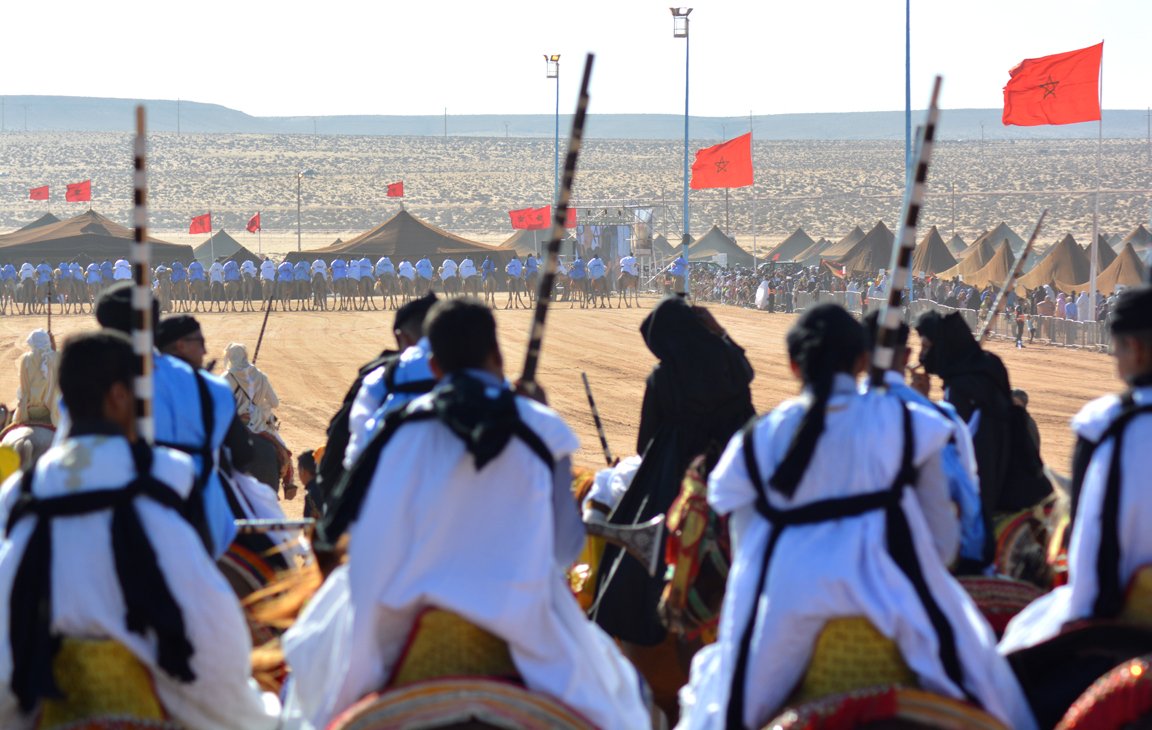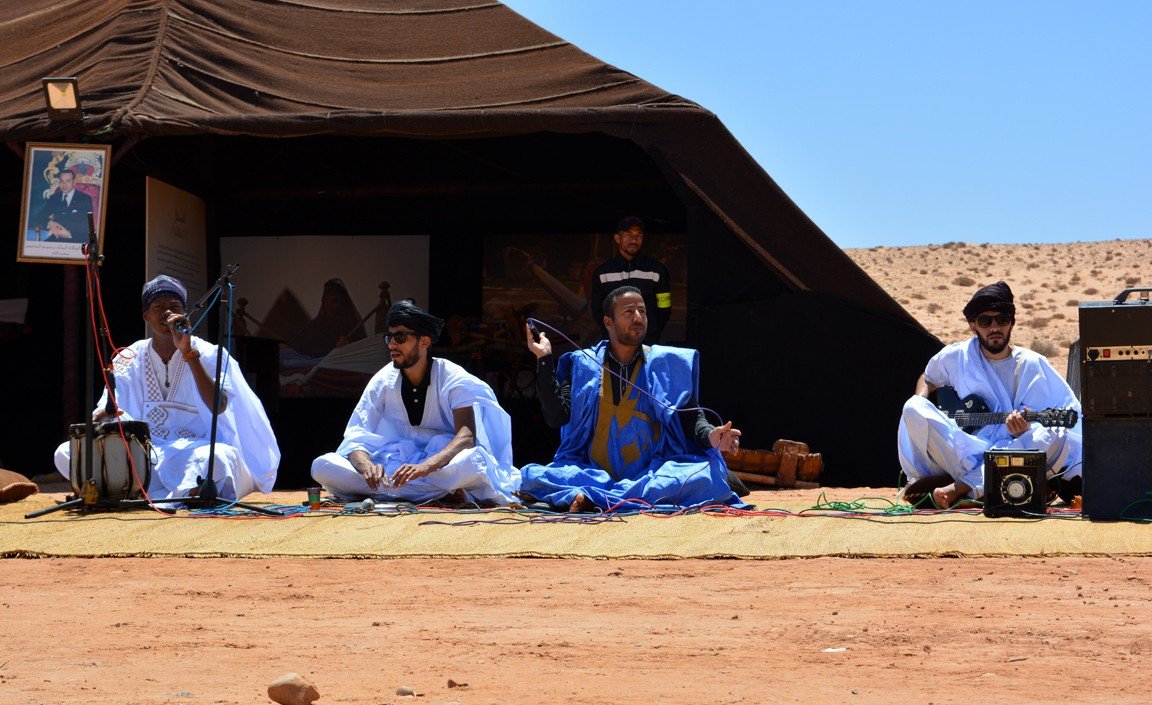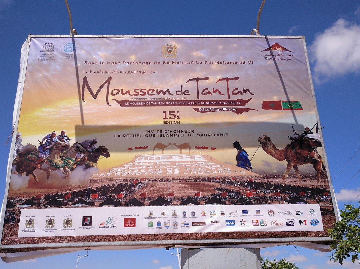 Cuando llegamos a Tan-Tan, lo hicimos con grandes expectativas. Era el día de la inauguración y celebraba la 15ª edición bajo el lema El Mussem de Tan-Tan, portador de la cultura nómada universal. La organización ha estado abanderada por la Fundación Al Mouggar, una institución creada a instancias del rey marroquí, que tiene la misión de preservar y potenciar el Mussem de Tan-Tan. Sus trabajos están orientados a promover y mejorar el patrimonio cultural que representa la cultura nómada del Marruecos sahariano (el patrimonio hassaní), un componente fundamental de la identidad marroquí.
