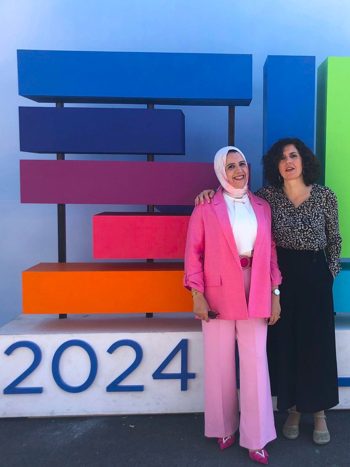 Presentación en la Fundación Tres culturas de Sevilla con Sanae Chairi (izquierda). Foto de autora (centro). Con Sanae Chairi, profesora y traductora en el SIEL (Salon du Livre et de l’Édtion) Rabat 2024 (derecha).