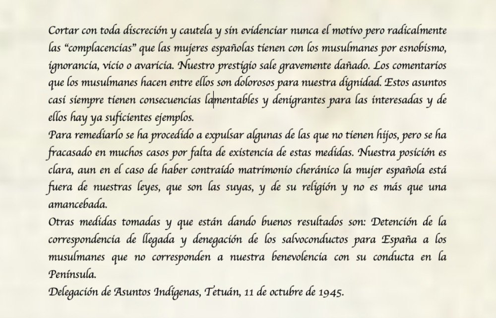 La persecución de las relaciones mixtas se contradecía abiertamente con una propaganda franquista que exaltaba la hermandad hispano-marroquí.