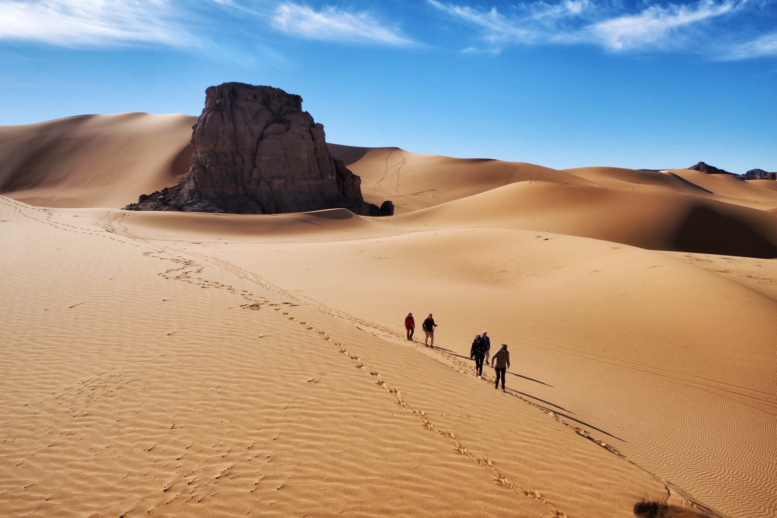 La diversidad geográfica de Marruecos o Argelia se nos presenta como un excepcional paisaje que acoge nuestras rutas a pie. Por experiencia, podemos afirmar que un lugar se siente más estimulante cuando lo descubres caminando. Es algo difícil de explicar la experiencia de moverte por tus propios medios de un lugar a otro durante días, inmerso en el ritmo lento de tus pasos y conectado al camino.